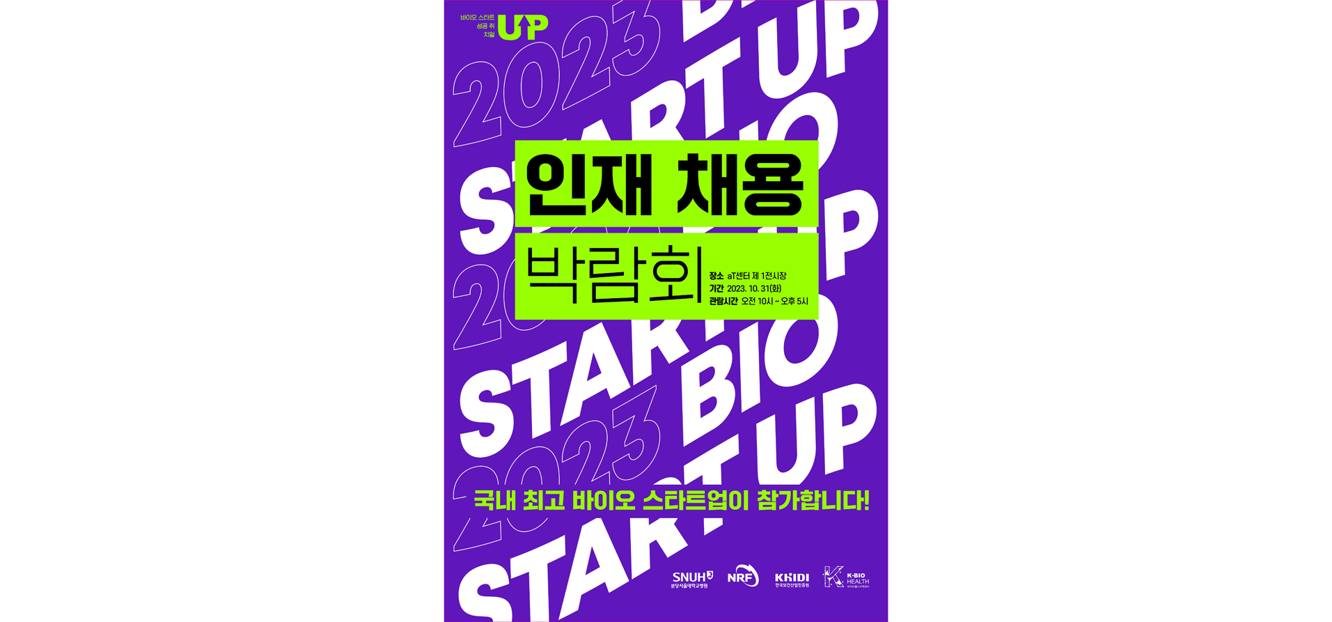 지난 10월 31일 양재 aT 센터 제1 전시장에서 열린 바이오 스타트업 인재채용박람회에 참관하였습니다.