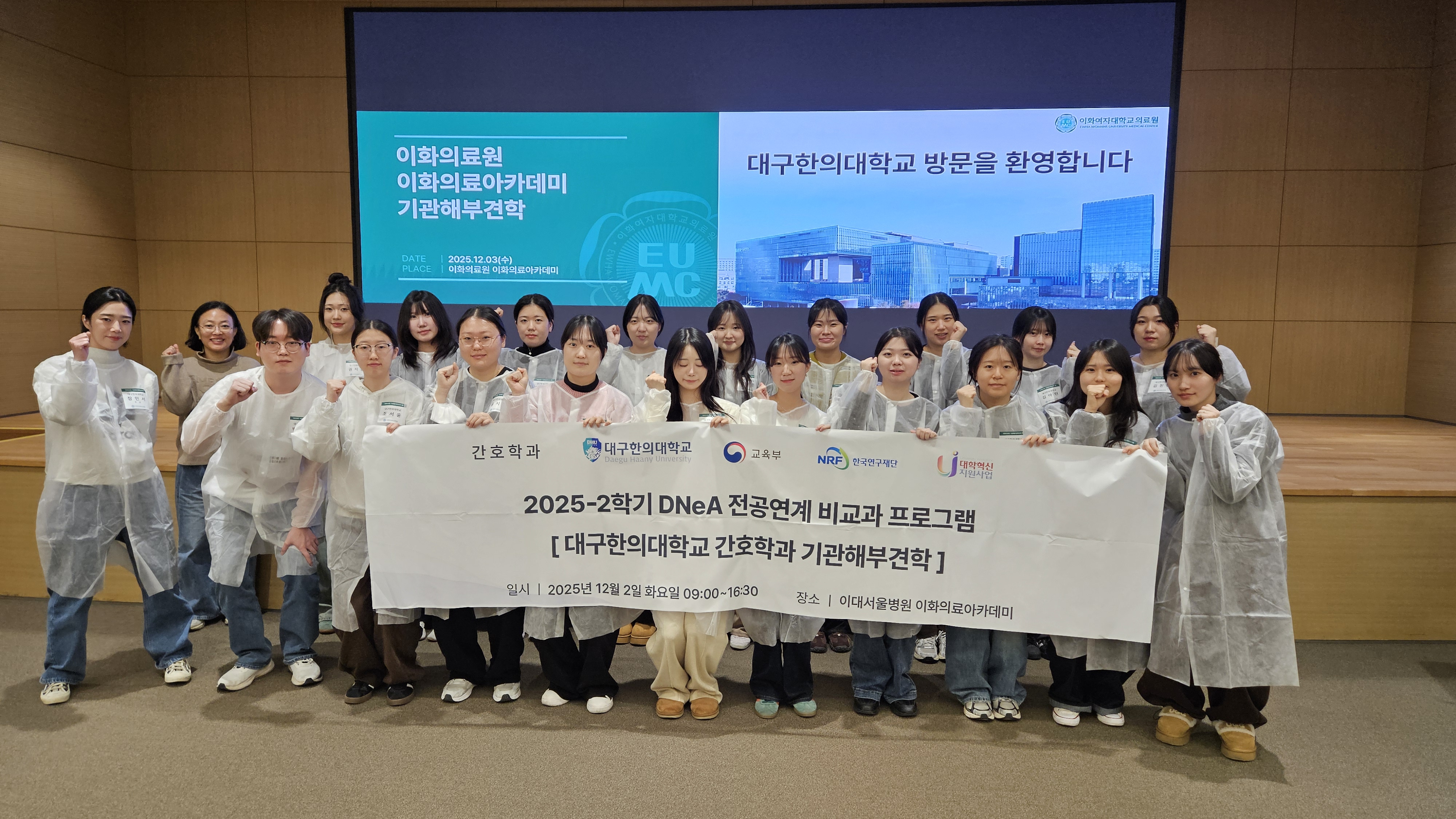 2025.12.03.(수) 이화의료아카데미에서는 이화의료원부속서울병원 및 이화여자대학교 의과대학과 연계하여 대구한의대학교 간호대학생 해부실습 견학 프로그램을 실시하였습니다.
